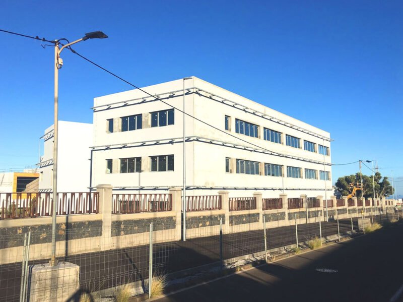 Cerramiento de edificio industrial Nanotec en Canarias, con sistema constructivo Baupanel® System.